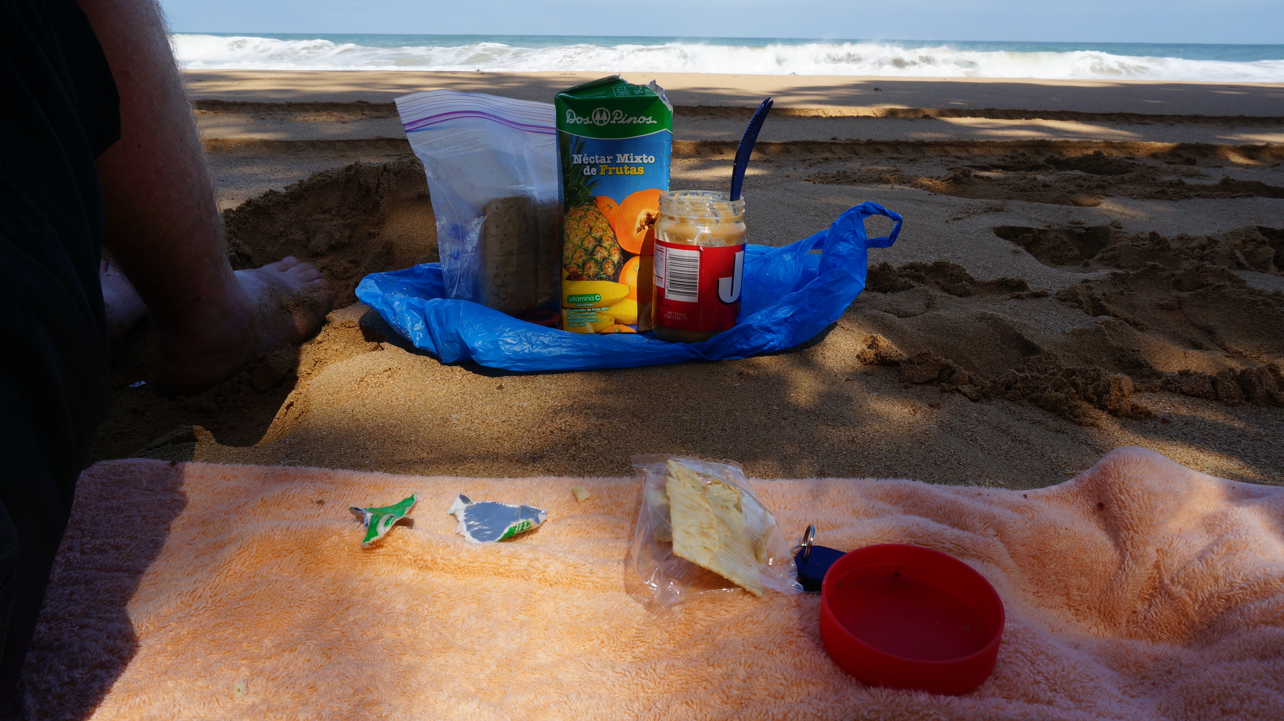 Flash forward to the end of our first day and color us surprised to find ourselves face to face with a sign we had painted just weeks before indicating that Al Norte Del Sur was only 800 meters away. That’s right, in 4 hours of hiking with our over stuffed backpacks we had walked in a big circle around the Guabun penninsula! Thank god it was freakin’ beautiful scenery, or I might have cried. We dragged our slightly deflated spirits to the nearby beach, Playa Rosauro. There was no campsite there, but we set up shop, unable to go any further. It was my first night of ‘guerilla camping’ as Jordan called it. We ate ramen, enjoyed the beautiful view of the ocean and passed out asleep.