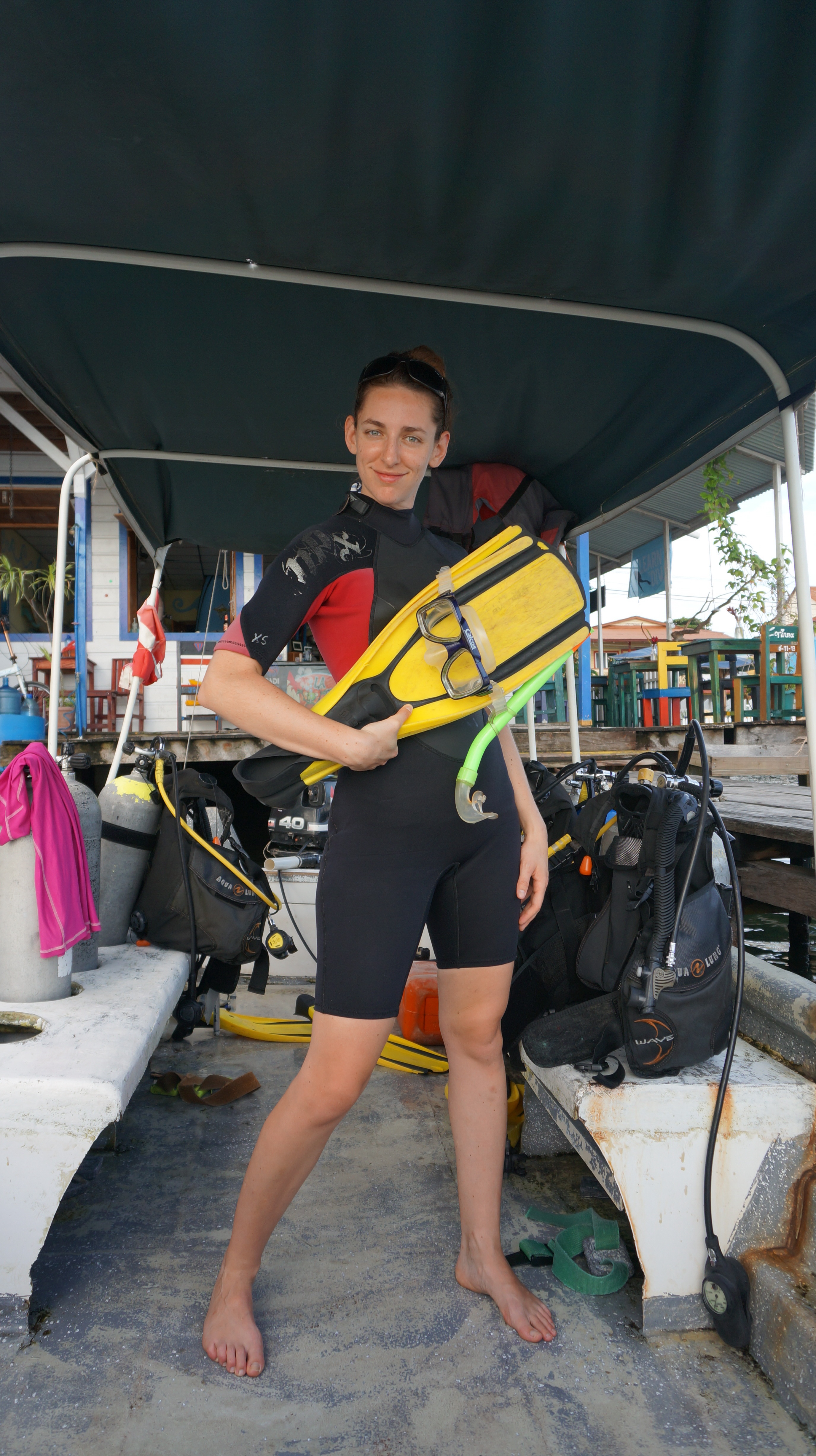The downtown area of Isla Colon in Bocas is basically a spring break style backpacker hub with cheap beers available everywhere and ample opportunities to drink all day long. This isn’t Jordan and my scene but it was fun to indulge here and there. The main goal of being there for us was to get our Scuba open water certification. Jordan, having much more ocean experience than me, really wanted to get certified and Panama is one of the cheapest places to do it, we were told. I never in my life thought I would go scuba diving but there I was, right next to Jordan, signing up.