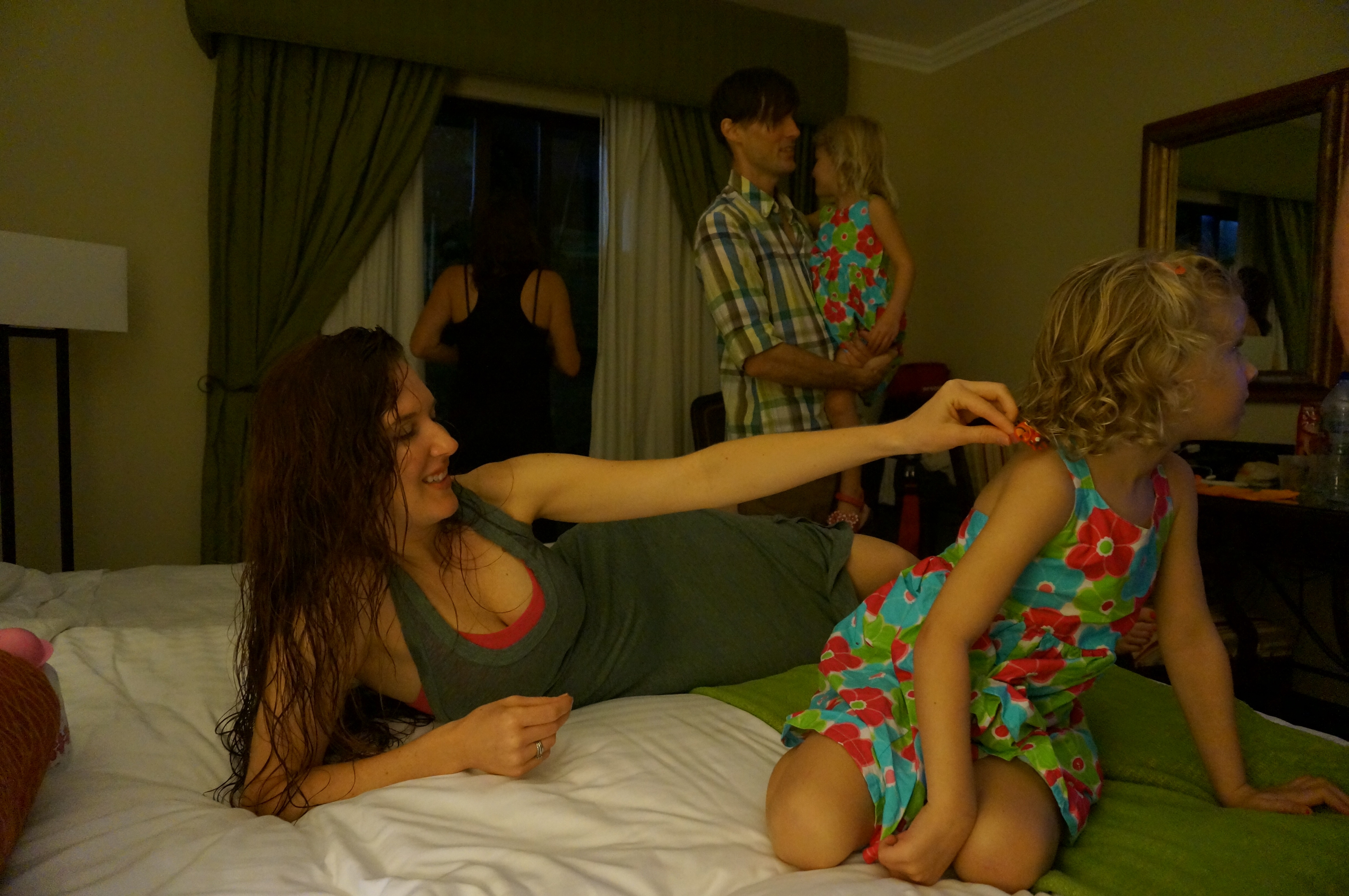 Despite everyone’s reluctance to leave our home paradise, we did venture out on two excursions. First, we spent one day zip-lining through the forest. Not knowing quite what to expect, we strapped on our harnesses, donned some seasoned smelling helmets and hiked up a mountain. On the way back down, we zipped 10 lines, rappelled twice and did one Tarzan swing. The birds eye view of the forest and the adrenaline rush were fantastic. The guides were all very experienced and liked to play jokes on us by pretending to fall out of the tree platforms. They definitely kept the mood jovial, right at the edge of terrifying. We also spent a day off shore on a boat fishing for mahi mahi and sail fish. By ‘we’ I mean Jordan and his family caught two sail fish and a beautiful mahi mahi which we ate for dinner that night. Meanwhile I was lying down beneath the captains chair, hurling into a bucket. 30 minutes into the trip i realized that I had made a huge mistake and prayed that the next 6 1/2 hours didn’t drag on too slowly… I have to say however, that my spew fest was worth it because at one point we came across a herd (pack? school?) of 2,000 dolphins!!!! I pulled myself up long enough to witness their playful spins and flips, and even saw a few babies swimming alongside their mamas. Jordan reeled in a 110 pound sailfish as well. Beautiful creatures! Apparently you always throw back a sail fish as opposed to bringing it home for dinner.